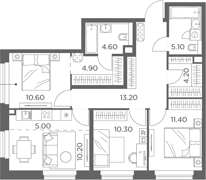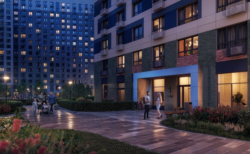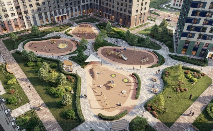 На первых этажах предусмотрены кладовые помещения для хранения сезонных вещей, что позволяет сохранить пространство в квартире. На территории комплекса — имеются детские сады и школы, детские площадки, тихие зоны для отдыха и занятий спортом, велодорожки, собственный большой физкультурно-оздоровительный комплекс с бассейном. Ландшафтный дизайн выполнен международным бюро «Gillespies». Для автовладельцев предусмотрены открытые многоуровневые паркинги.