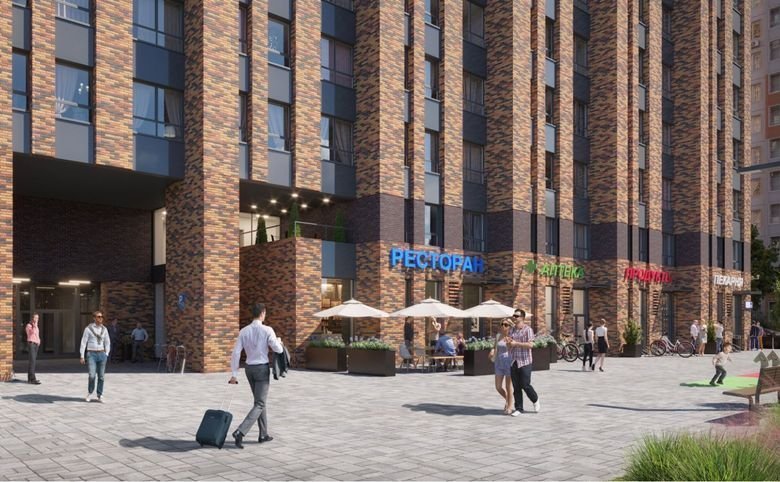 На первых этажах расположены коммерческие помещения, а также обучающий центр и коворкинг зона с лекторием. Во дворе оборудованы детская и спортивная площадки. Для автовладельцев предусмотрена стоянка.